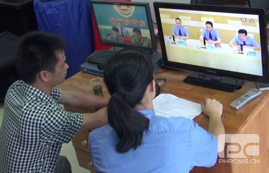 图为自治区检察院刘继胜副检察长通过视频接访黄某海