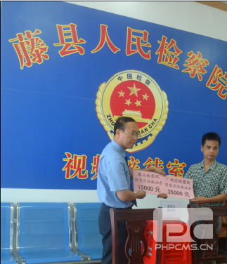 “我是广西自治区检察院副检察长刘继胜,我刚听了你的介绍,对你的遭遇非常同情,我们决定对你救助人民币35000元,藤县检察院也决定对你进行救助人民15000元,希望你好好利用这笔钱,重振生活信心,照顾好家庭,好好生活,同时对于案件我们也会依法依规进行办理……”,“我非常感谢自治区检察院领导和藤县检察院领导对我的关心,对我大力进行救助,今后我一定好好生活,绝不辜负领导的期望……”这感人的一幕发生在2016年6月30日的藤县检察院远程视频接待室,现场是被救助人黄某海以及藤县检察院的副检察长韦焕成和办案干警,而视频的另一端是自治区检察院党组副书记、副检察长刘继胜,他们正在进行视频对话。随后,藤县检察院副检察长韦焕成将广西自治区检察院救助的35000元和藤县检察院救助的15000元国家司法救助金发放给黄某海,黄某海激动得热泪盈眶,再次向广西自治区检察院刘继胜副检察长和藤县检察院副检察长表示感谢。